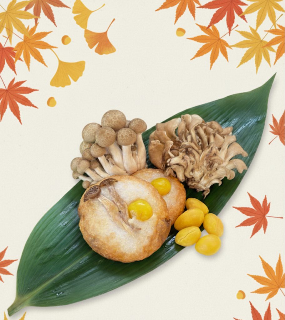 10月の月替わりはんぺいは 舞茸・しめじ・銀杏入り